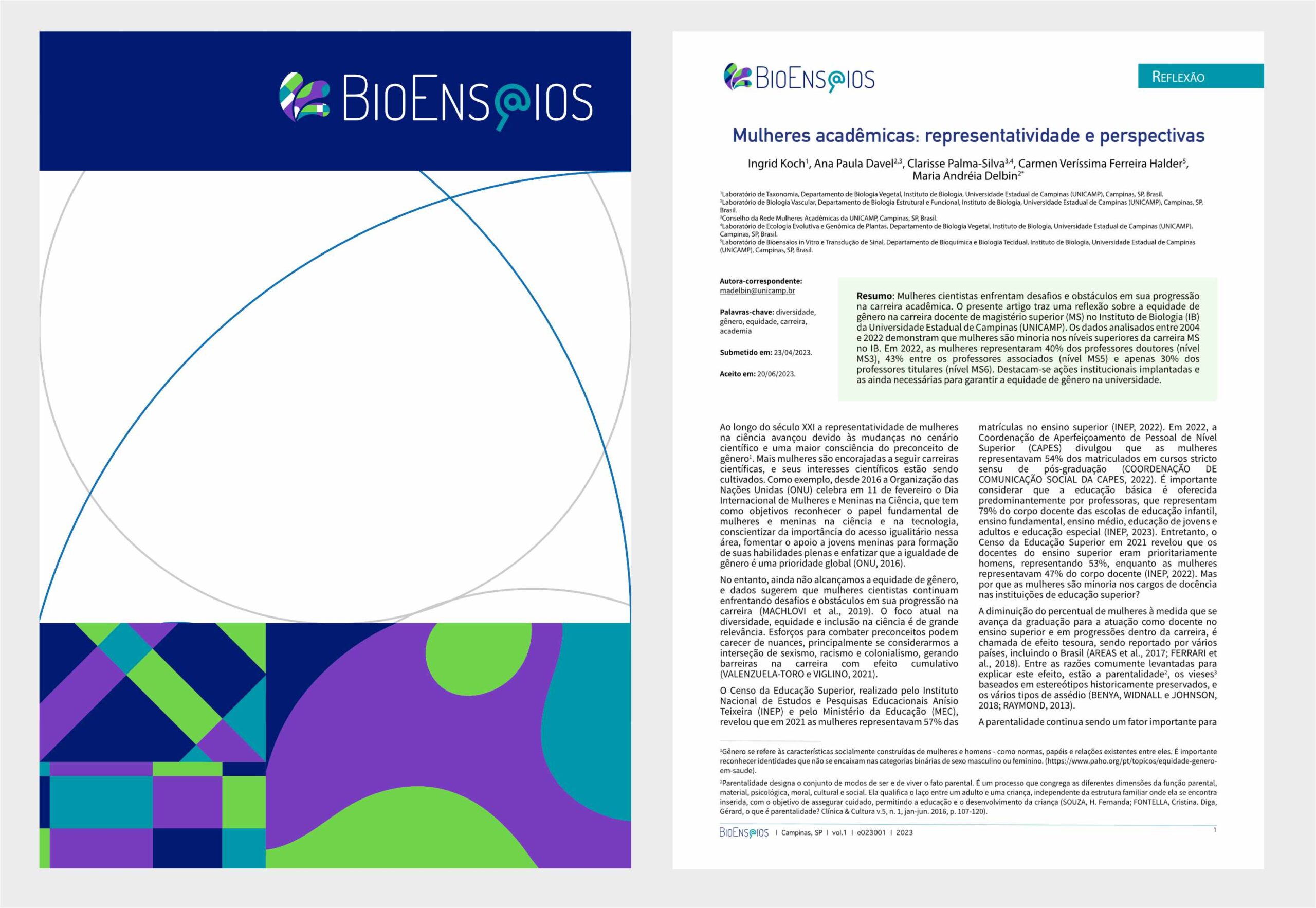 Identidade visual e design editorial da revista eletrônica BioEns@ios que nasceu no IB-Unicamp.